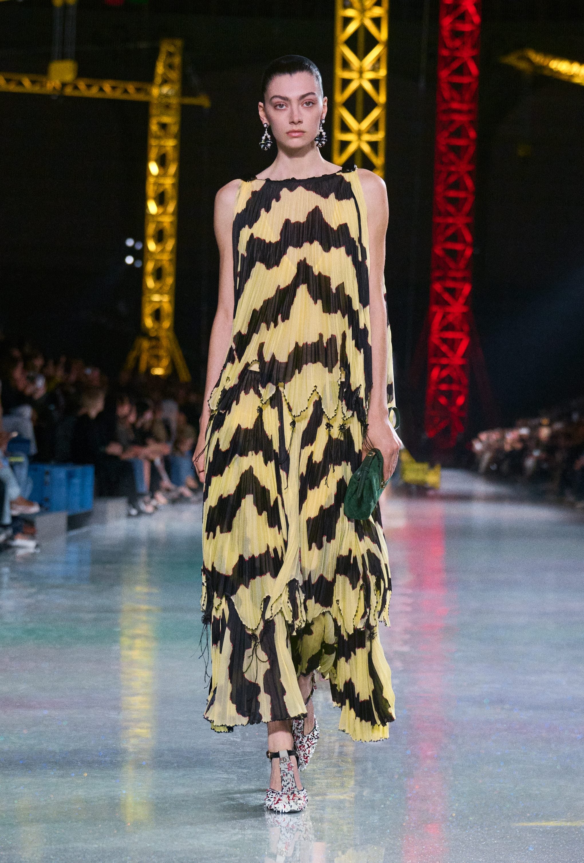 Abiti in seta o coperti di macro paillettes, completi in lana, fantasie a quadri maxi blazer e gonne a vita bassissima sfilano alla Paris Fashion Week sulla passerella Autunno/Inverno 2026-2027 di Chanel