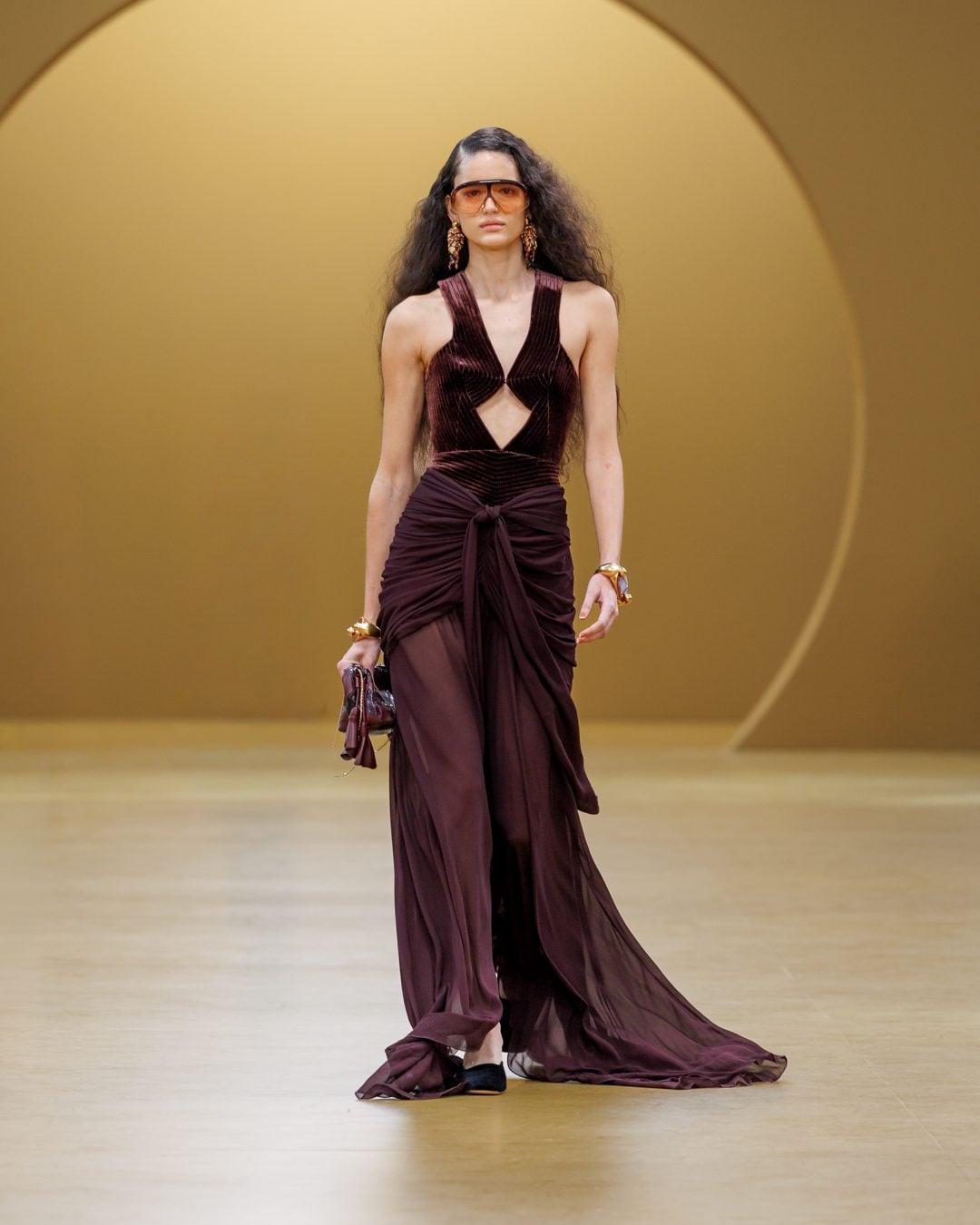 Abiti foulard, trench in denim e coprispalle in pelliccia eco sfilano alla Paris Fashion Week sulla passerella Autunno/Inverno 2026-2027 di Zimmermann