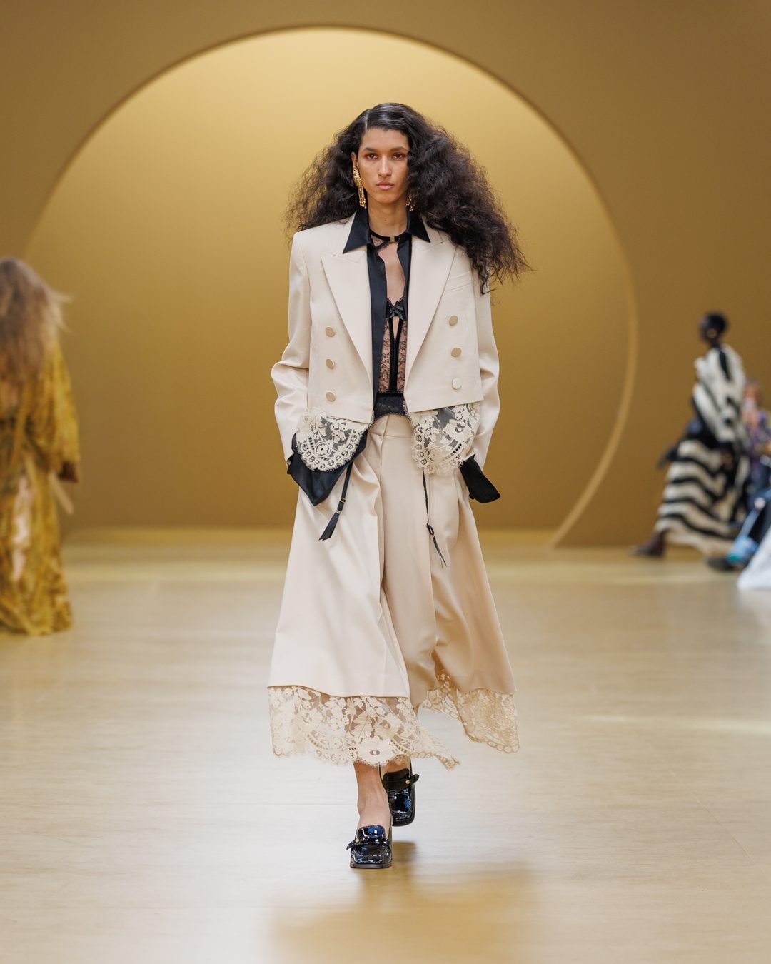 Abiti foulard, trench in denim e coprispalle in pelliccia eco sfilano alla Paris Fashion Week sulla passerella Autunno/Inverno 2026-2027 di Zimmermann