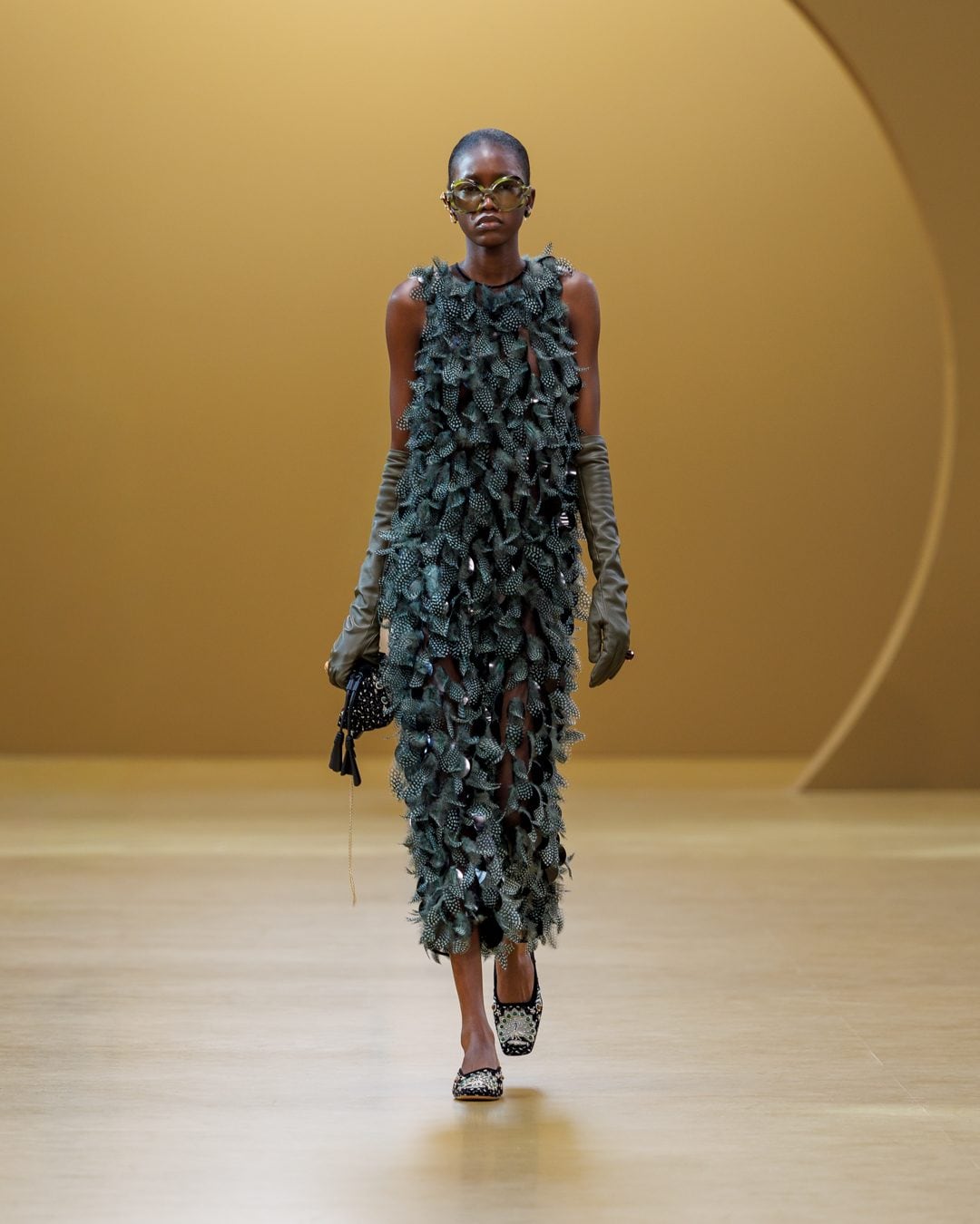 Abiti foulard, trench in denim e coprispalle in pelliccia eco sfilano alla Paris Fashion Week sulla passerella Autunno/Inverno 2026-2027 di Zimmermann