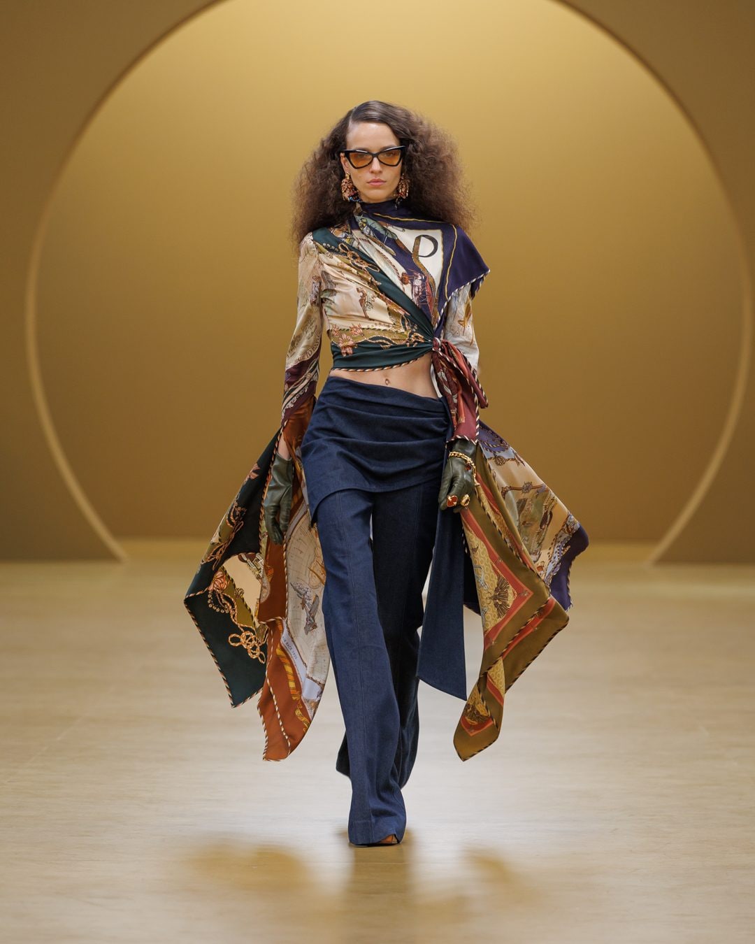 Abiti foulard, trench in denim e coprispalle in pelliccia eco sfilano alla Paris Fashion Week sulla passerella Autunno/Inverno 2026-2027 di Zimmermann