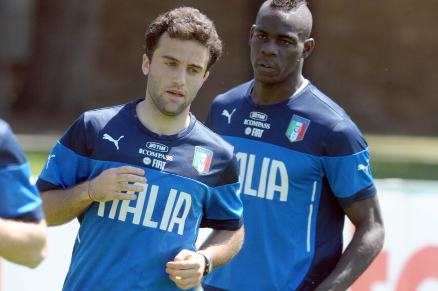 • Balotelli palleggia, ai piedi scarpe di colore diverso