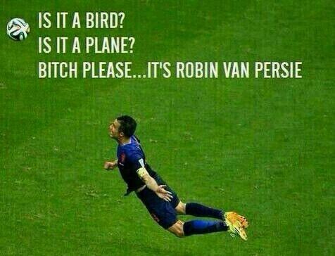 Robin van Persie protagonista dell'ironia della Rete che si scatena sull'incredibile perfomance dell'attaccante olandese, protagonista della schiacciante vittoria degli orange sulla Spagna