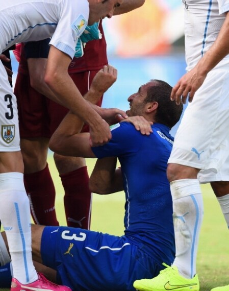 Ecco le immagini che immortalano i segni lasciati sul corpo di Chiellini dal morso di Suarez