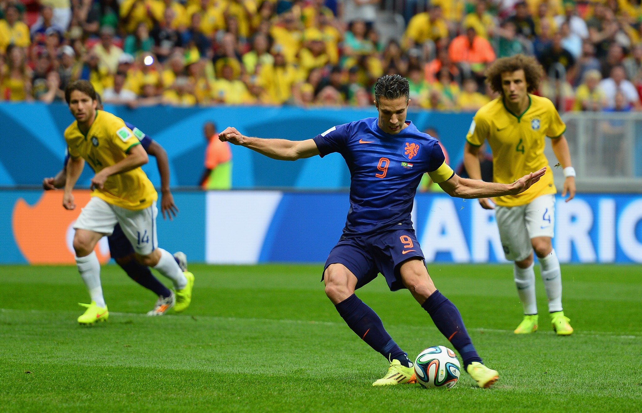Grande azione in velocità tra Van Persie e Robben con l'esterno del Bayern Monaco che viene trattenuto poco fuori dall'area di rigore da Thiago Silva. L'arbitro però indica il dischetto e concedere il rigore all'Olanda ammonendo Thiago Silva. Van Persie tira un penalty perfetto dove Julio Cesar non può arrivare.
