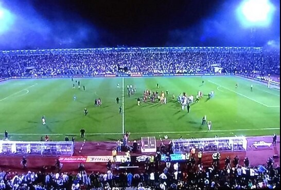 Serbia-Albania era iniziata non nei migliori auspici. Una partita ad altissimo rischio, tanto che era stata vietata ai tifosi ospiti, che è stata sospesa dopo che un calciatore serbo ha "abbattuto" un drone che sorvolava il campo, con una bandiera di rivendicazione di autonomia albanese attaccata. Calci e pugni tra i calciatori in campo: dopo volano anche sedie sul terreno di gioco. Scendono pure gli ultras serbi tra cui il famigerato Ivan Bogdanov.
