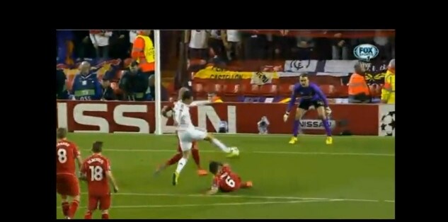 Il vantaggio è del Real sul Liverpool è da manuale del calcio: gran pallonetto del colombiano per il portoghese che tocca da campione e batte il portiere