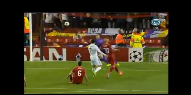 Il vantaggio è del Real sul Liverpool è da manuale del calcio: gran pallonetto del colombiano per il portoghese che tocca da campione e batte il portiere