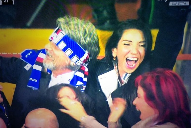 La sciarpa della Samp fascia la testa e quasi gli cade sugli occhi ma il presidente Ferrero ne fa una sorta di amuleto per tutta la partita col Napoli. Al punto che, dopo il gol di Eder, il dubbio è legittimo: ma sarà riuscito a vedere il tiro e la rete?