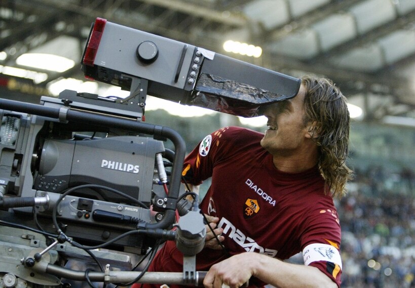 Totti, dalla telecamera al cellulare: 2 gol, selfie e un derby da record-man
