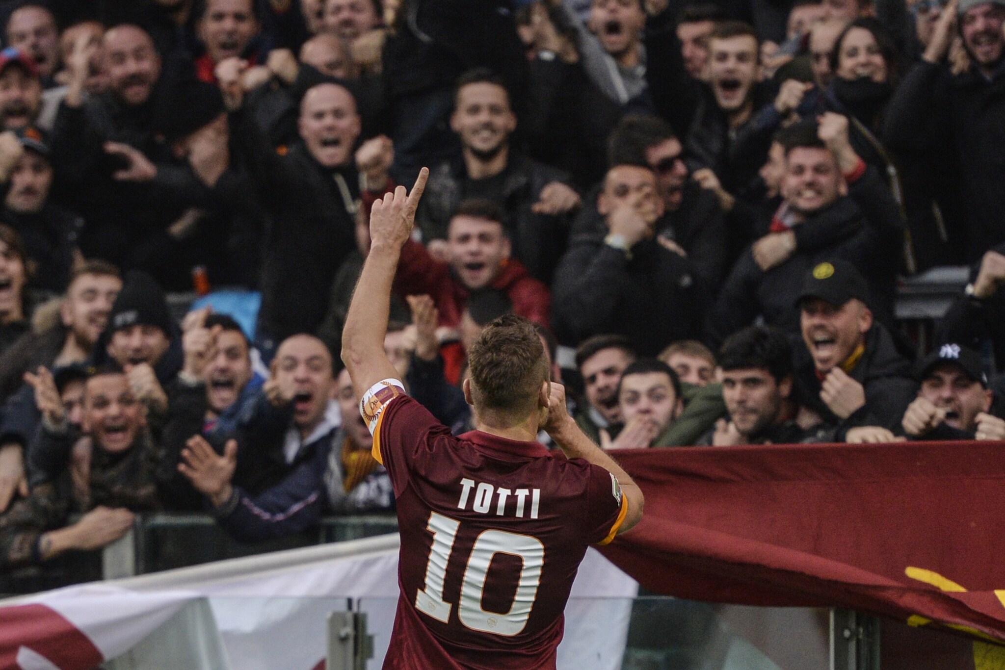 Totti, dalla telecamera al cellulare: 2 gol, selfie e un derby da record-man