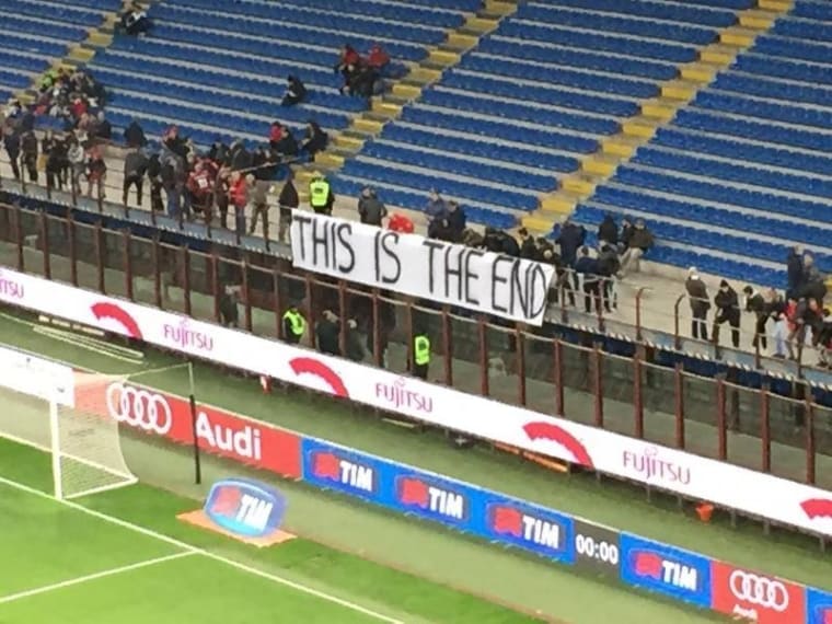 I tifosi rossoneri della curva Sud avevano annunciato la contestazione nei confronti della squadra disertando la partita. Emblematici gli striscioni apparsi a San Siro