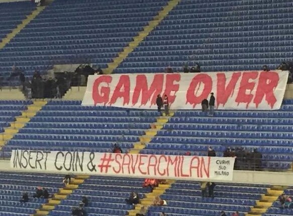 I tifosi rossoneri della curva Sud avevano annunciato la contestazione nei confronti della squadra disertando la partita. Emblematici gli striscioni apparsi a San Siro