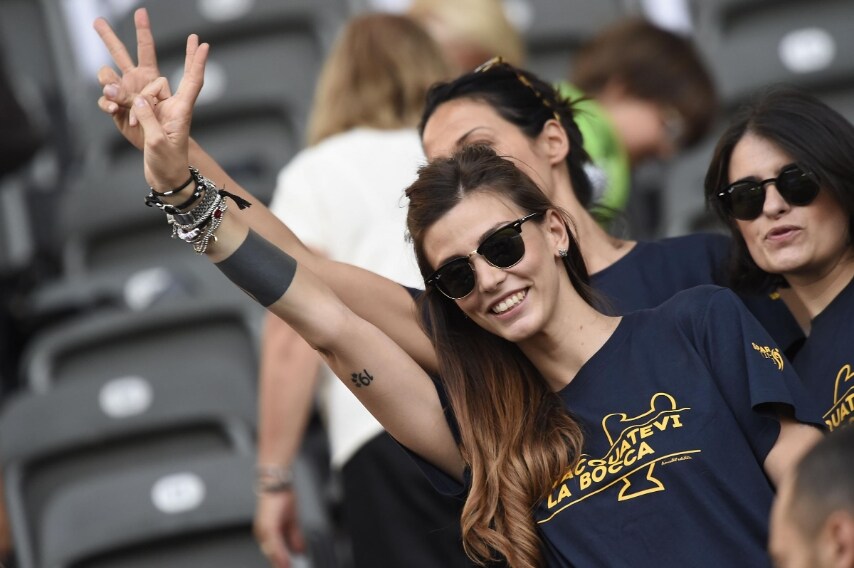 Dalla splendida Federica Nargi (compagna di Matri) a Veronica Zimbaro (moglie di Storari), in tribuna a Berlino a fare il tifo ci sono anche le dolci metà dei calciatori di Juventus e Barcellona.
