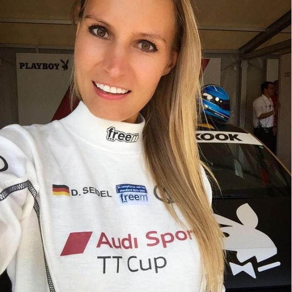 Doreen Seidel, 29 anni, bionda, tedesca. Dopo aver conquistato la copertina di Playboy Germania quale playmate del 2008, adesso si cimenta nel mondo dei motori. E da quest'anno partecipa in qualità di pilota ospite nel campionato monomarca Audi TT Sport Cup. Auto numero 99 con il brand del 'coniglietto' che l'accompagna nella nuova avventura mozzafiato... come le sue curve.