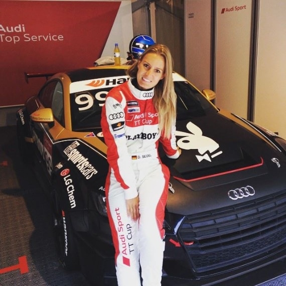Doreen Seidel, 29 anni, bionda, tedesca. Dopo aver conquistato la copertina di Playboy Germania quale playmate del 2008, adesso si cimenta nel mondo dei motori. E da quest'anno partecipa in qualità di pilota ospite nel campionato monomarca Audi TT Sport Cup. Auto numero 99 con il brand del 'coniglietto' che l'accompagna nella nuova avventura mozzafiato... come le sue curve.
