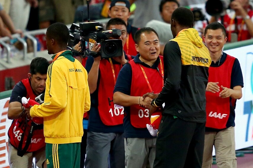 Curioso siparietto dopo la cerimonia di premiazione dei 200 metri: Tao Song, l'operatore della tv cinese diventato "famoso" in tutto per aver investito il giamaicano mentre lo riprendeva, gli ha chiesto scusa e regalato un braccialetto. Strette di mano e sorrisi tra i due, tra gli applausi di tutto lo stadio di Pechino.