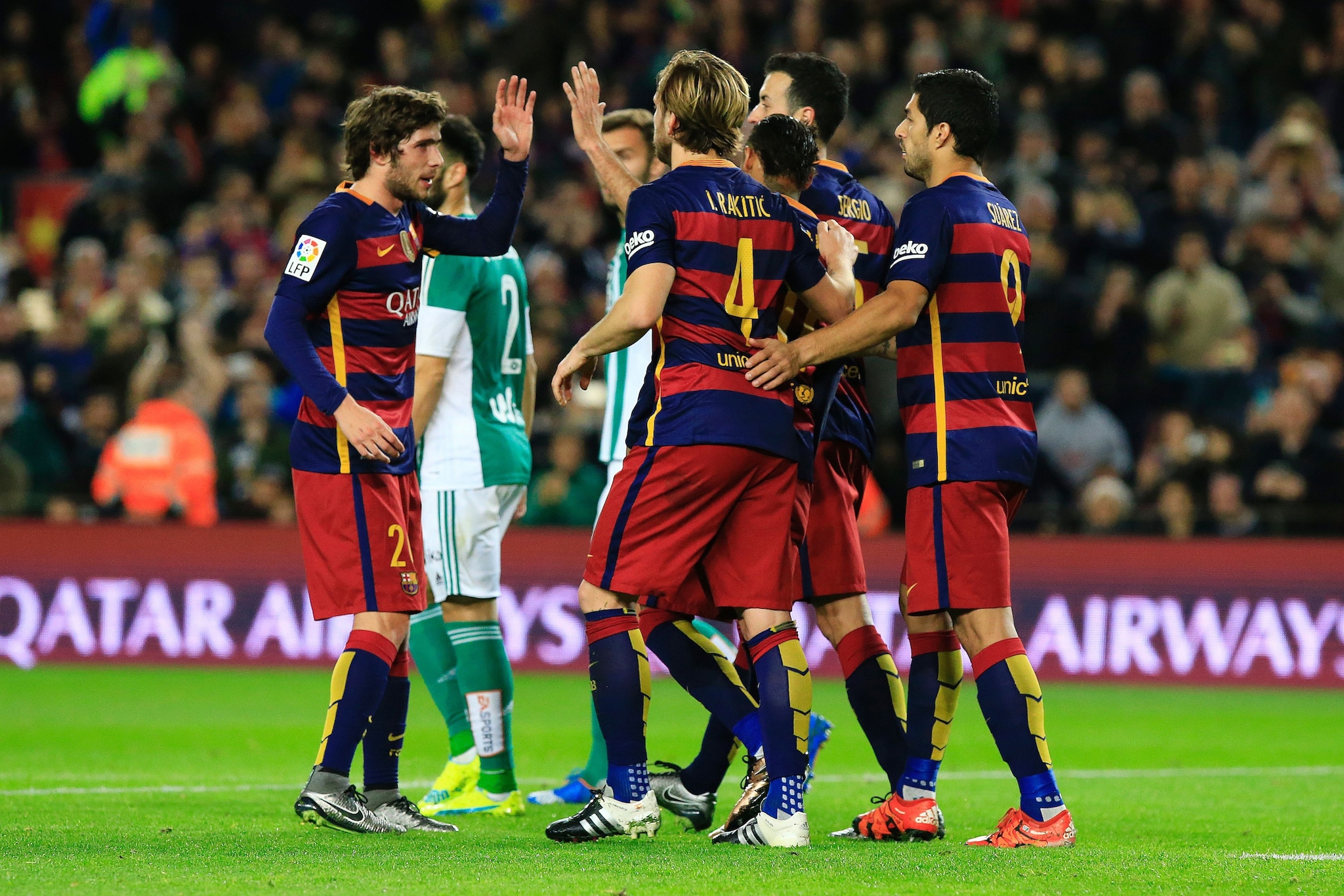 I blaugrana travolgono gli andalusi: match senza storia, decidono Suarez (doppietta), Messi ed un'autorete di Westermann. Per l'argentino gol numero 425 in 500 gare con i catalani.