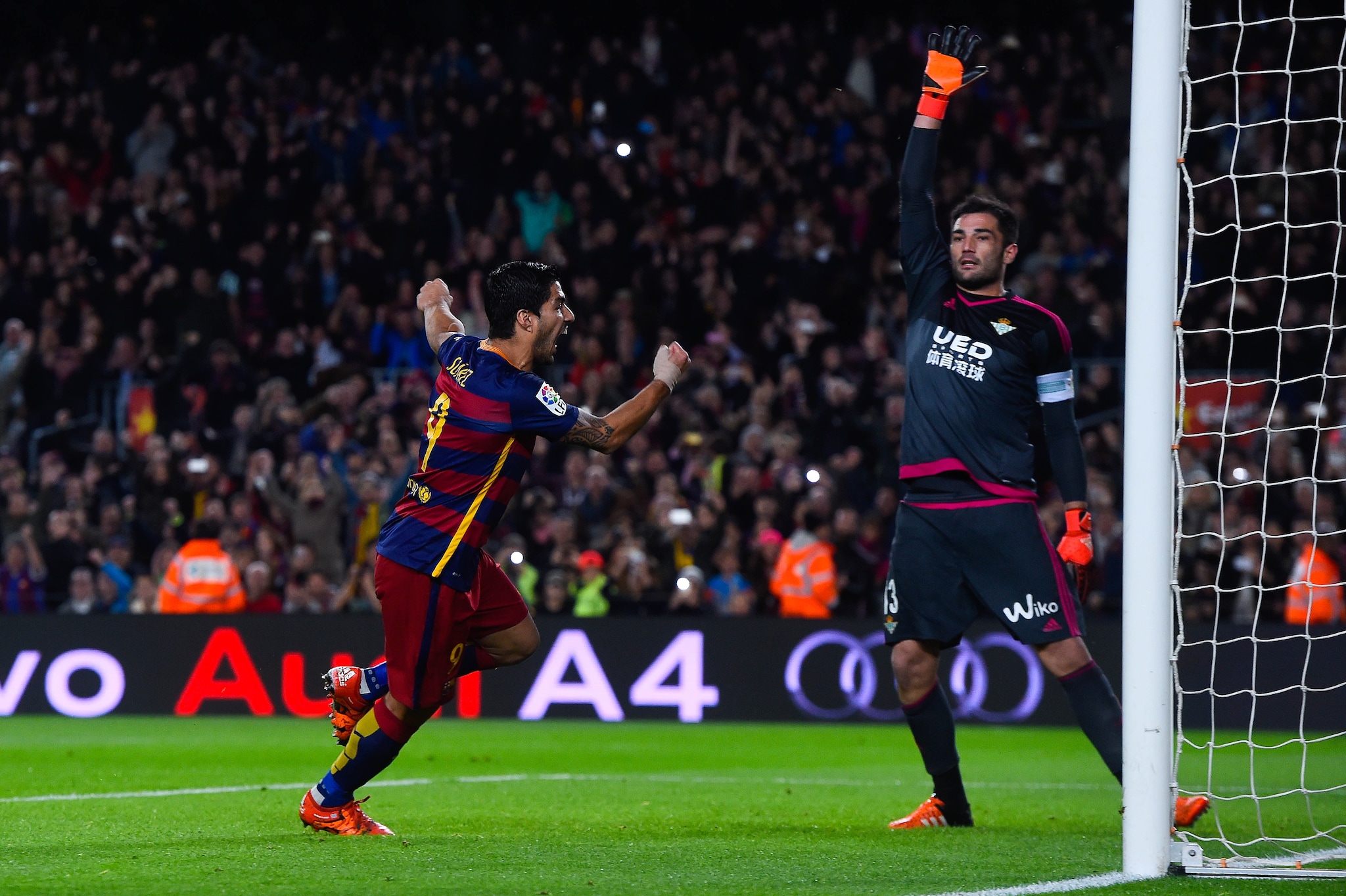 I blaugrana travolgono gli andalusi: match senza storia, decidono Suarez (doppietta), Messi ed un'autorete di Westermann. Per l'argentino gol numero 425 in 500 gare con i catalani.