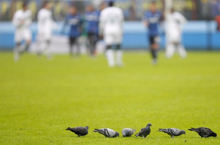Piccioni in campo a San Siro, ironia social sull'Inter