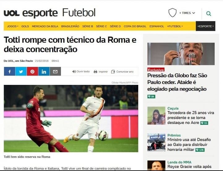 La rottura tra Totti e Spalletti ha fatto il giro del mondo, a parlarne sono anche i massimi giornali sportivi dagli spagnoli (As, Marca, Mundo Deportivo) fino ai tabloid (Mirror).