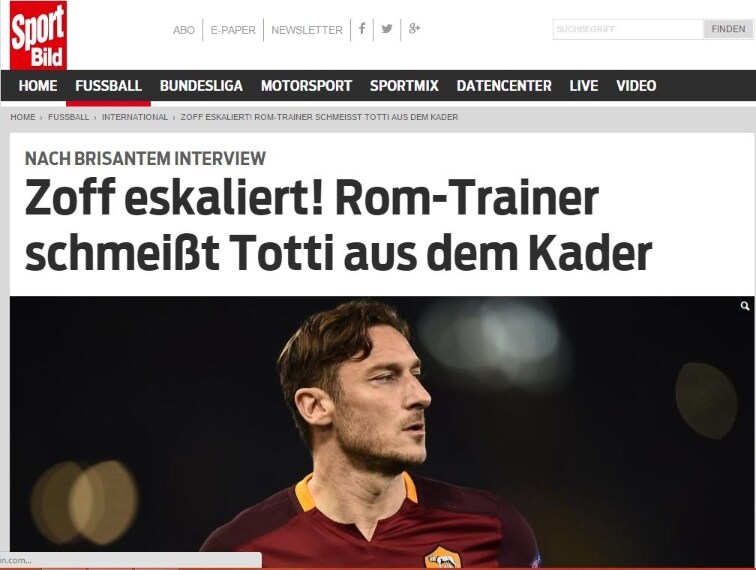 La rottura tra Totti e Spalletti ha fatto il giro del mondo, a parlarne sono anche i massimi giornali sportivi dagli spagnoli (As, Marca, Mundo Deportivo) fino ai tabloid (Mirror).