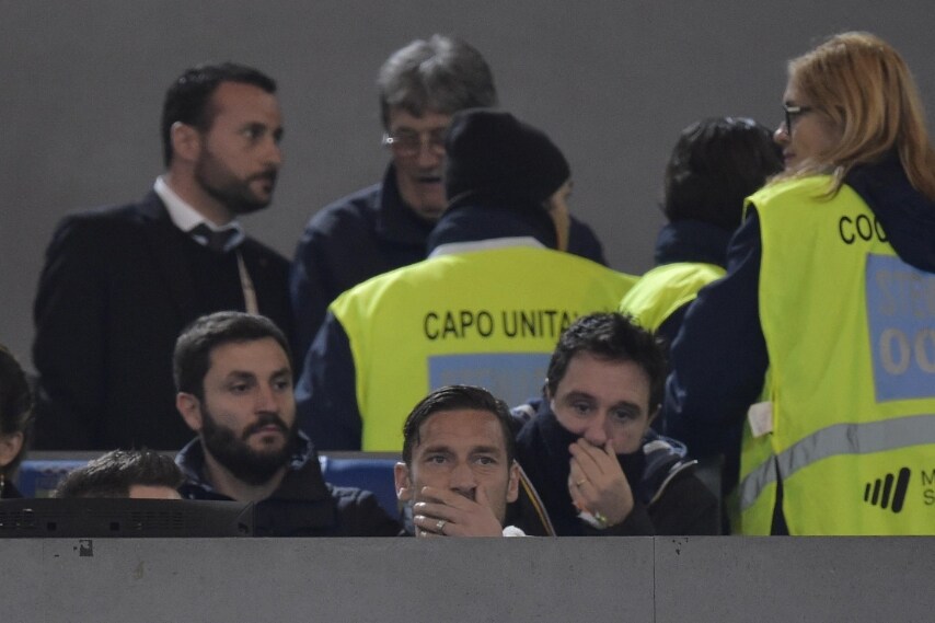 Francesco Totti era in tribuna all'Olimpico nonostante la rottura con Luciano Spalletti. Accolto dall'ovazione dei tifosi, il capitano della Roma ha salutato il pubblico commosso.