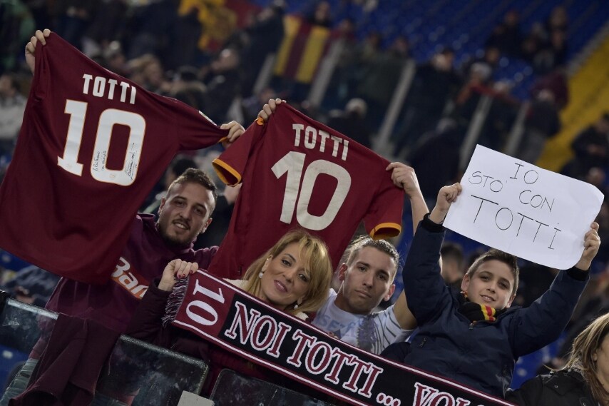 Francesco Totti era in tribuna all'Olimpico nonostante la rottura con Luciano Spalletti. Accolto dall'ovazione dei tifosi, il capitano della Roma ha salutato il pubblico commosso.