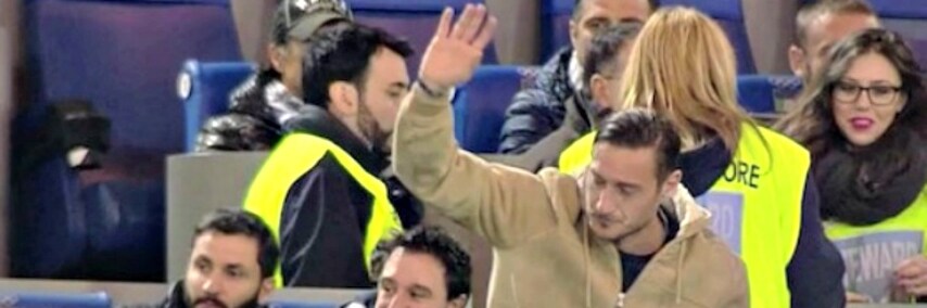 Francesco Totti era in tribuna all'Olimpico nonostante la rottura con Luciano Spalletti. Accolto dall'ovazione dei tifosi, il capitano della Roma ha salutato il pubblico commosso.