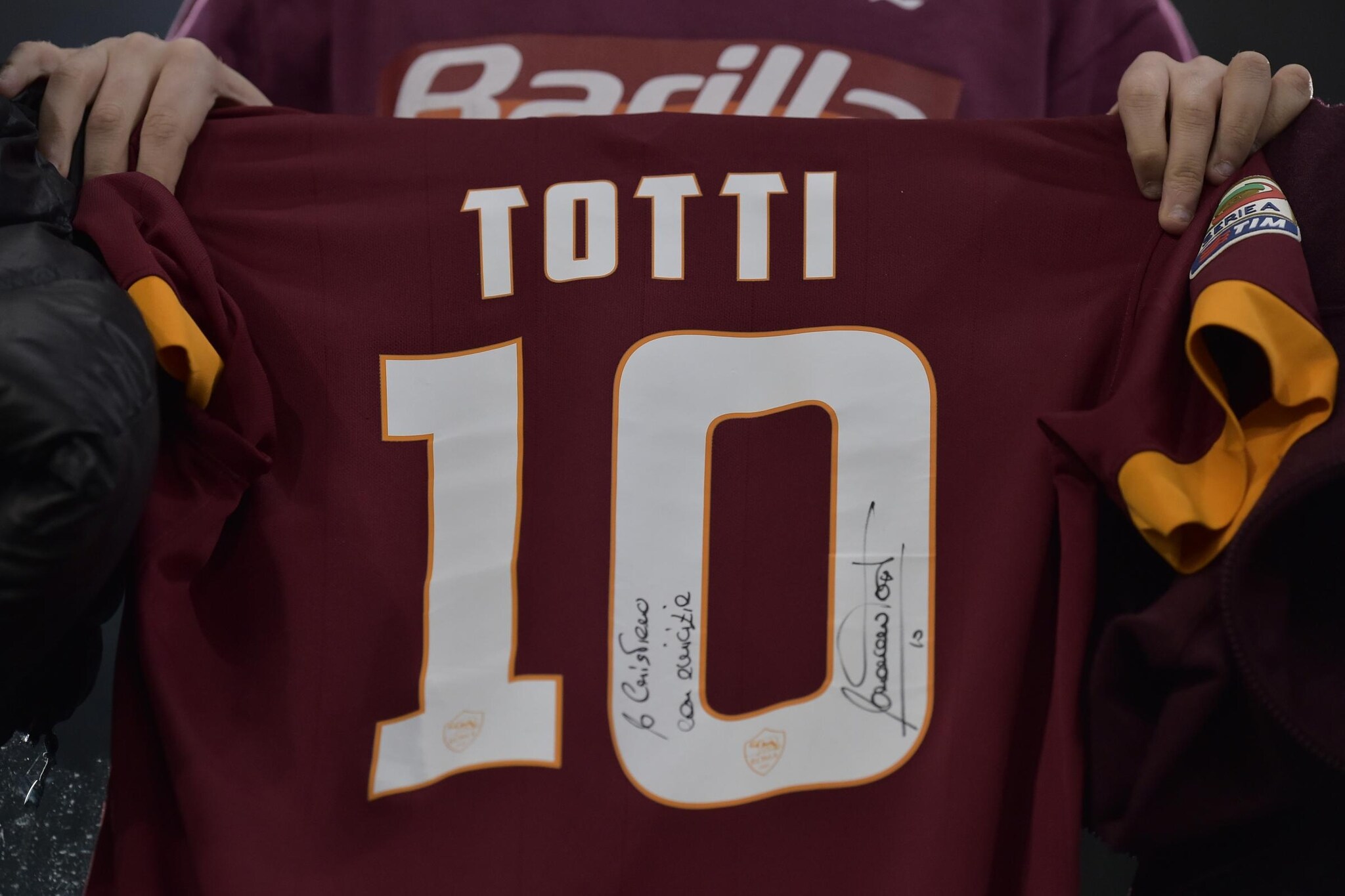 Francesco Totti era in tribuna all'Olimpico nonostante la rottura con Luciano Spalletti. Accolto dall'ovazione dei tifosi, il capitano della Roma ha salutato il pubblico commosso.