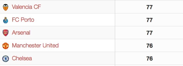 Si contendono la palma di migliore squadra su FIFA 16, considerando la media dei voti dei calciatori, Real Madrid, Barcellona, PSG e Bayern Monaco. La prima delle italiane è la Juventus, subito dietro il Napoli. Leggermente più staccate Roma e Inter. Sono le uniche 4 italiane nella Top 20.