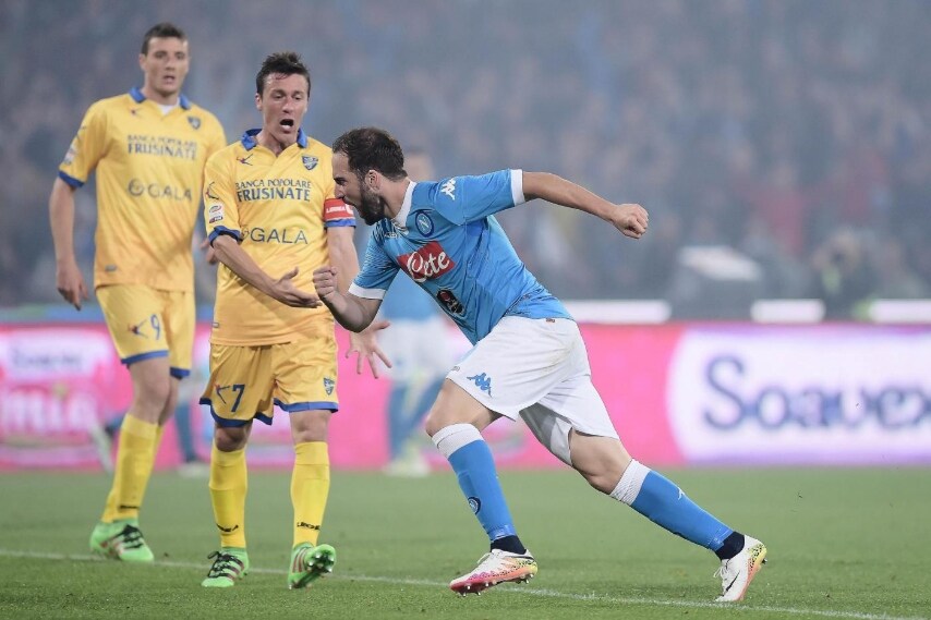 Il Napoli batte 4-0 il Frosinone e conquista il secondo posto. Higuain realizza tre reti e batte il record di Nordahl, che cade dopo 66 anni.