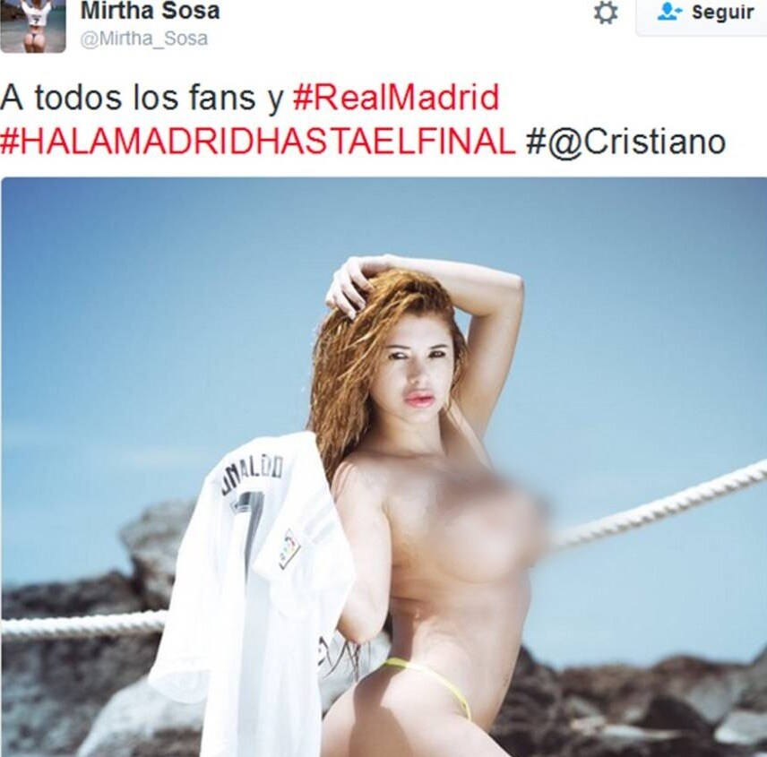 L'aveva promesso da diverso tempo Mirtha Sosa, modella spagnola di Playboy, pronta a spogliarsi integralmente se il real Madrid avesse vinto la Champions League. Il trionfo c'è stato, anche se solo ai rigori, ma la bella Mirtha non ha deluso i suoi tifosi e ha mantenuto la promessa.