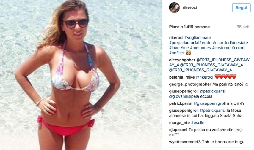 Si chiama Rike Roci, è una giovane tifosa dell'Albania ed è stato grande protagonista anche lei della sfida contro la Francia. Prima, durante e dopo l'incontro, la bella ragazza insieme a una sua avvenente amica, è stata più volte fotografata. Così sui social si è scatenata una vera e propria corsa al like delle sue foto, anche su Instagram.