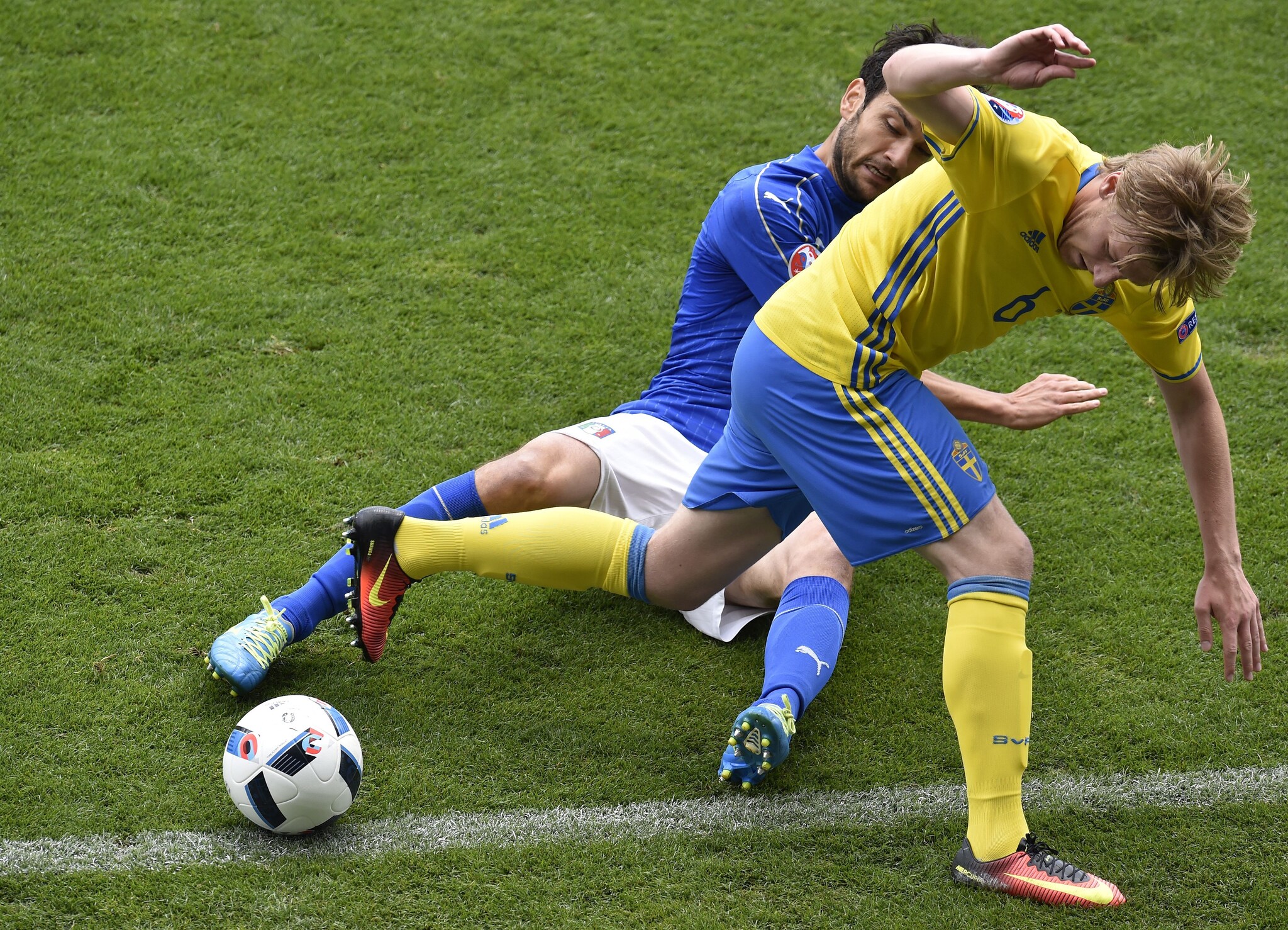 Seconda gara del Girone E tra italia e Svezia. Gli azzurri ci arrivano dopo la vittoria contro il Belgio, gli scandinavi in seguito al pareggio contro l'Irlanda. Thiago Motta e Sturaro (subentrati nel finale) senza voto. Regge la difesa, difficoltà in mediana, in attacco ci salva solo un guizzo.
