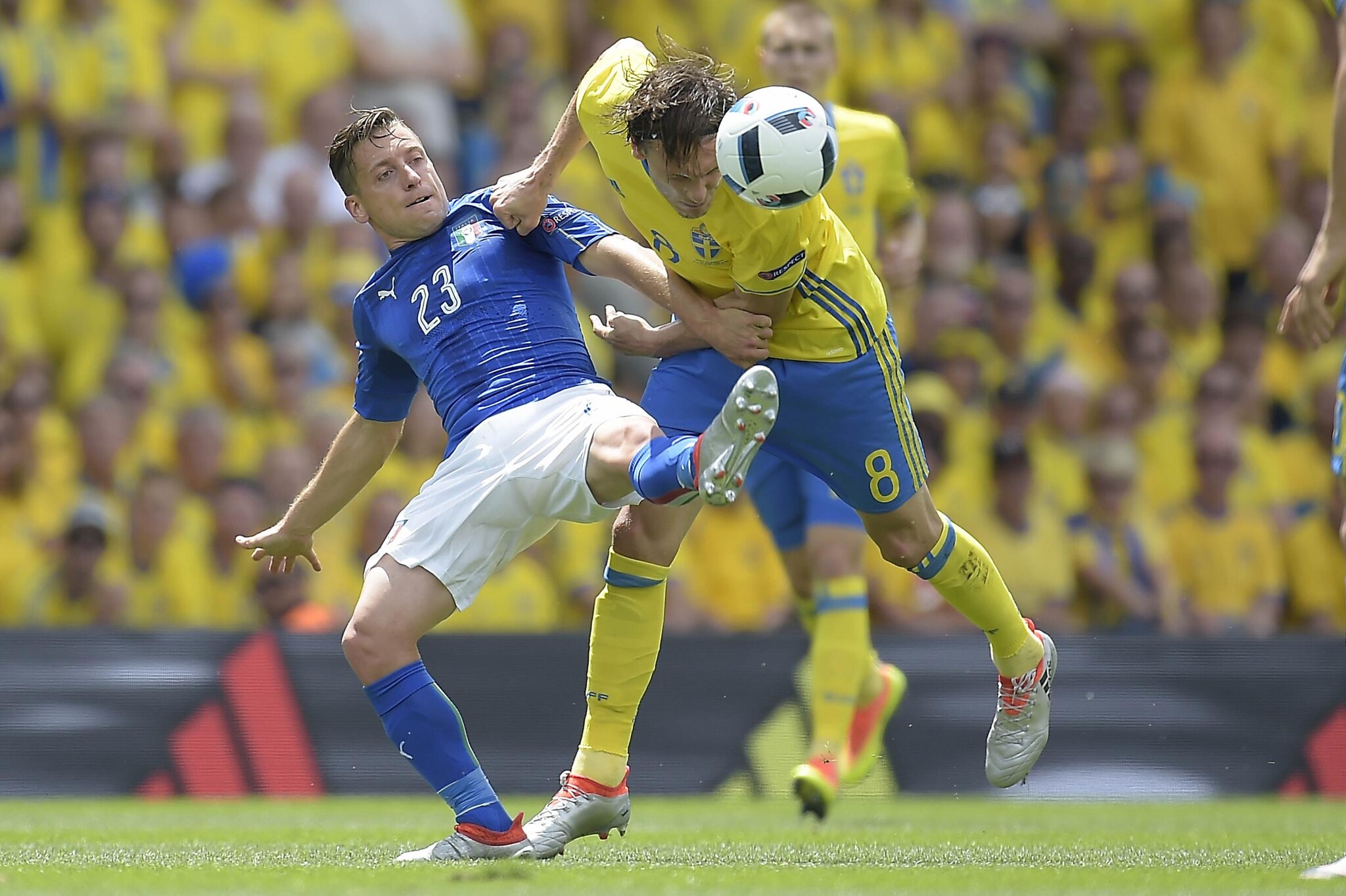 Seconda gara del Girone E tra italia e Svezia. Gli azzurri ci arrivano dopo la vittoria contro il Belgio, gli scandinavi in seguito al pareggio contro l'Irlanda. Thiago Motta e Sturaro (subentrati nel finale) senza voto. Regge la difesa, difficoltà in mediana, in attacco ci salva solo un guizzo.