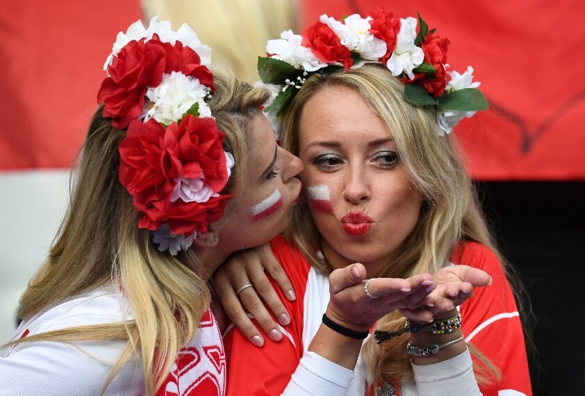 Anche un bacio tra due ragazze prima dell'inizio della sfida tra Germania e Polonia. L'amore che trionfa a Euro 2016 sugli spalti degli stadi francesi: coppie più o meno giovani che si scambiano amorevoli effusioni durante le partite degli Europei.
