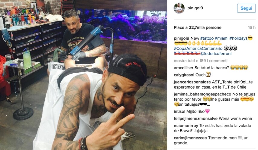 L'attaccante cileno, già famoso per diversi tatuaggi fatti durante la sua carriera e riguardanti le sue prove con la maglia della nazionale cilena, ha deciso di farne uno nuovo che ricordi la Copa America vinta pochi giorni fa contro l'Argentina in finale.
