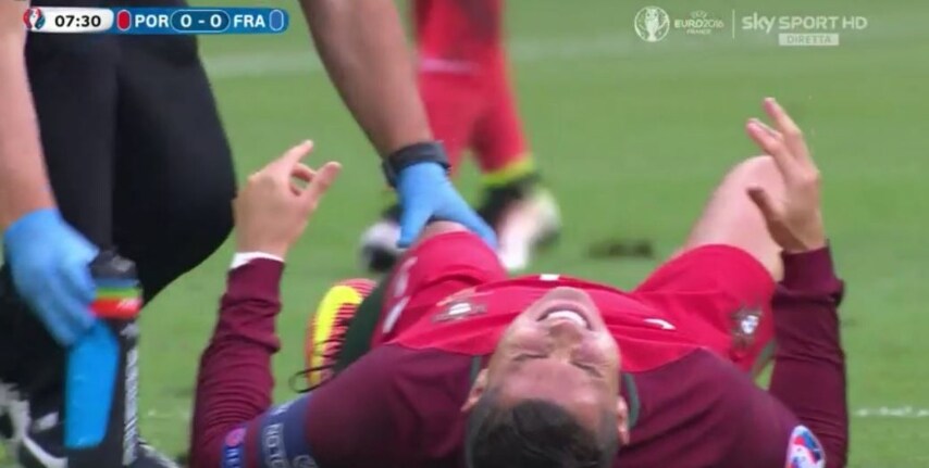 Cristiano Ronaldo subisce un colpo da Payet in un contrasto ed è costretto ad abbandonare il campo per qualche attimo. Rientra visibilmente zoppicante.