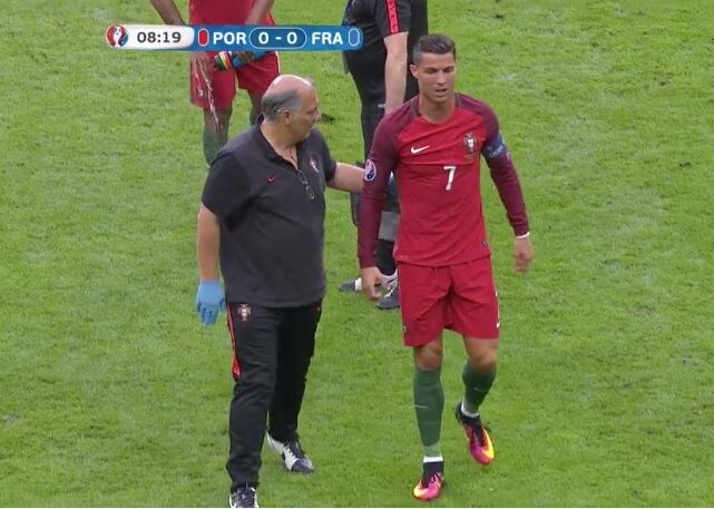 Cristiano Ronaldo subisce un colpo da Payet in un contrasto ed è costretto ad abbandonare il campo per qualche attimo. Rientra visibilmente zoppicante.