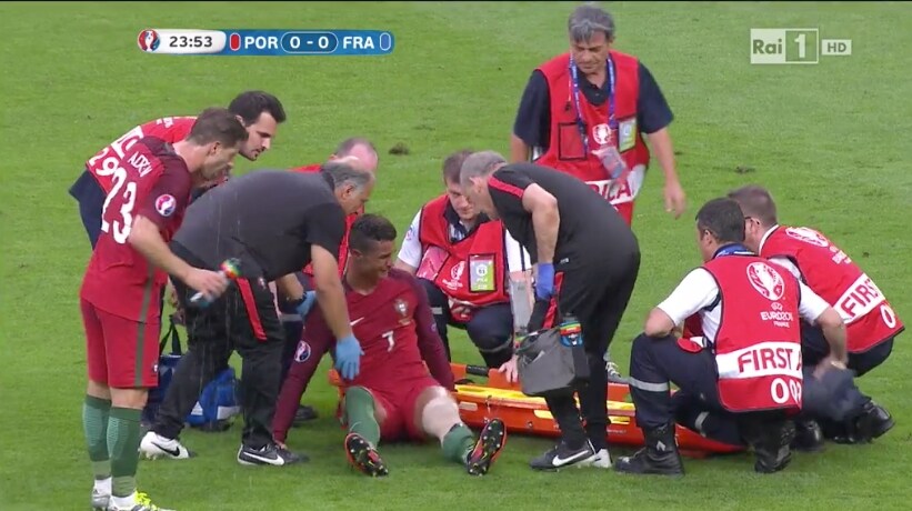 Ronaldo in lacrime, esce in barella