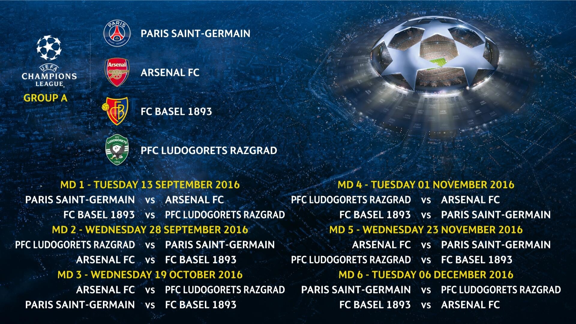 Champions 2016/2017, il calendario della fase a gironi