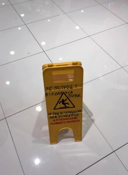 Il noto scrittore partenopeo Maurizio De Giovanni, ha pubblicato una foto scattata all'aeroporto di Napoli. Nell'immagine, De Giovanni mostra il tipico cartello posto sul pavimento dopo che gli inservienti sono passati per pulirlo e disinfettarlo. Sullo stesso però c'è un simpatico avvertimento, con relativa traduzione in inglese.