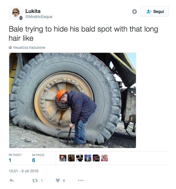 Gareth Bale sempre più capellone, un modo, secondo alcuni, di nascondere la calvizie che era balzata agli occhi durante gli Europei (http://youmedia.fanpage.it/gallery/ak/575c5b2ae4b090fe3a986963). Sul web spuntano i primi meme che sulla sua capigliatura, in particolare dopo le immagini di Galles Georgia in cui si è mostrato con i capelli sciolti.