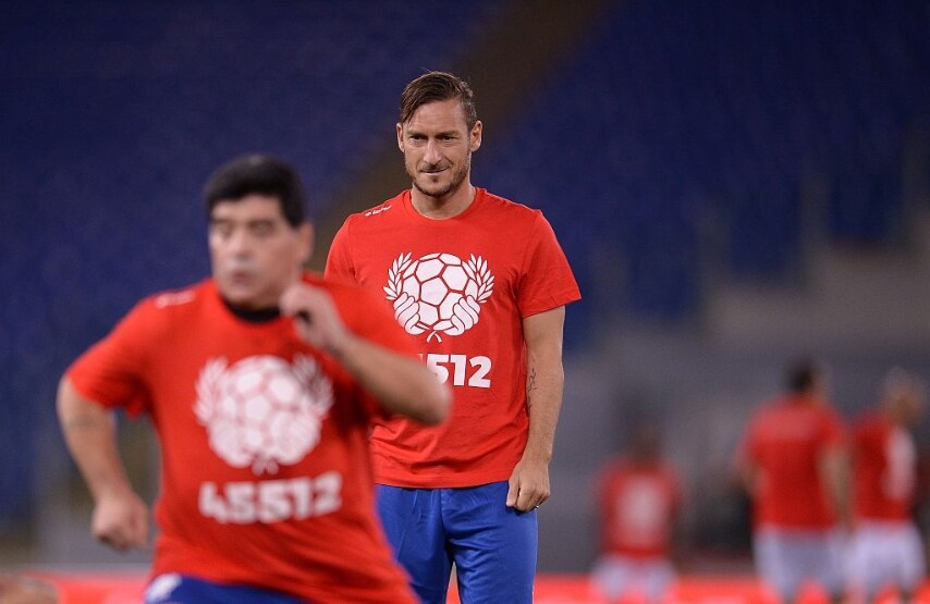 Le foto dell'incontro tra l'ex Pibe de Oro e il numero 10 della Roma
