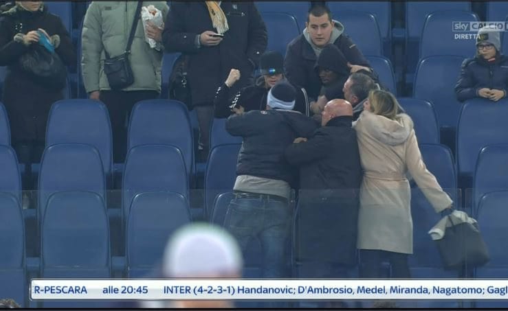La sconfitta e un brutto epilogo. Non poteva finire nel modo peggiore la sfida tra la Lazio - battuta all'Olimpico dal Chievo con un gol di Inglese - e la squadra di Maran. Al termine del match tifosi insultano l'argentino Biglia e la situazione trascende fino al punto che per evitare il contatto (come si evince dalle immagini carpite dalle telecamere Sky Sport) sono costretti a intervenire i magazzinieri del club. In tribuna Tounkara della Primavera biancoceleste avrebbe dato un pugno a uno dei sostenitori più esagitati. Una situazione divenuta incandescente anche per la presenza della moglie di Biglia sugli spalti: suo malgrado, la donna ha rischiato di restare coinvolta in quella baruffa biasimevole.