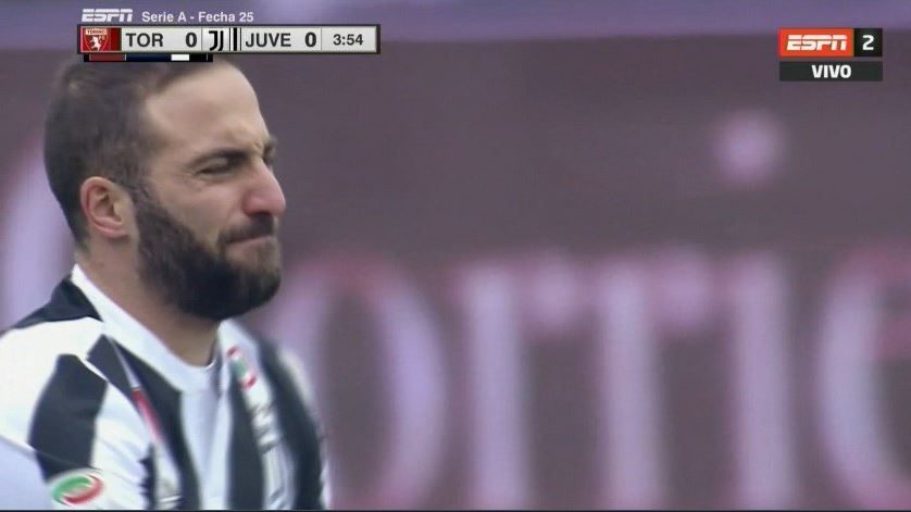 Caviglia sinistra dolente per Gonzalo Higuain che s'infortuna nei primi minuti della sfida di campionato contro il Torino. Il Pipita, anticipato da Sirigu in uscita, prova a saltare il portiere ma il piede fa un movimento innaturale, una torsione scandita dalla smorfia di dolore dell'attaccante argentino. Il calciatore prova a restare in campo ancora per qualche minuto poi è costretto al cambio.