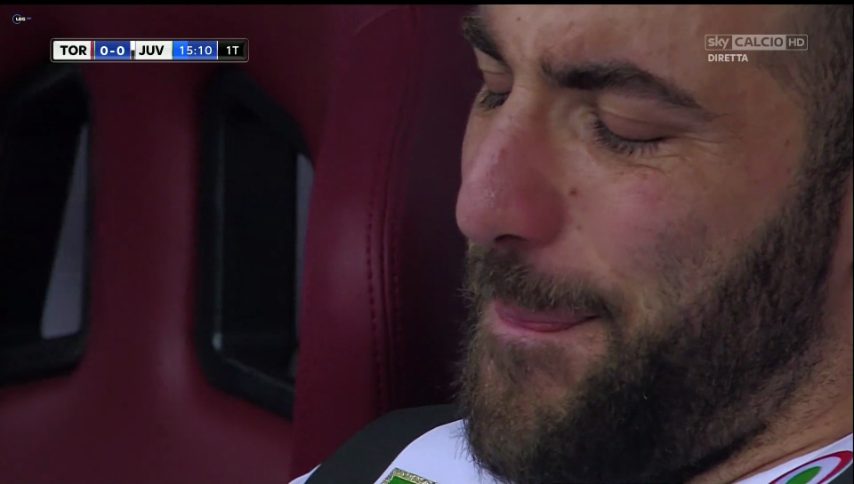 Caviglia sinistra dolente per Gonzalo Higuain che s'infortuna nei primi minuti della sfida di campionato contro il Torino. Il Pipita, anticipato da Sirigu in uscita, prova a saltare il portiere ma il piede fa un movimento innaturale, una torsione scandita dalla smorfia di dolore dell'attaccante argentino. Il calciatore prova a restare in campo ancora per qualche minuto poi è costretto al cambio.