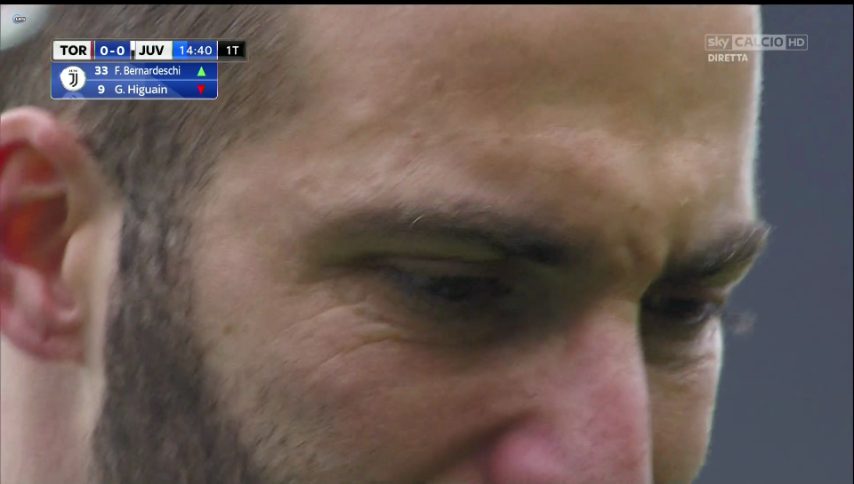 Caviglia sinistra dolente per Gonzalo Higuain che s'infortuna nei primi minuti della sfida di campionato contro il Torino. Il Pipita, anticipato da Sirigu in uscita, prova a saltare il portiere ma il piede fa un movimento innaturale, una torsione scandita dalla smorfia di dolore dell'attaccante argentino. Il calciatore prova a restare in campo ancora per qualche minuto poi è costretto al cambio.