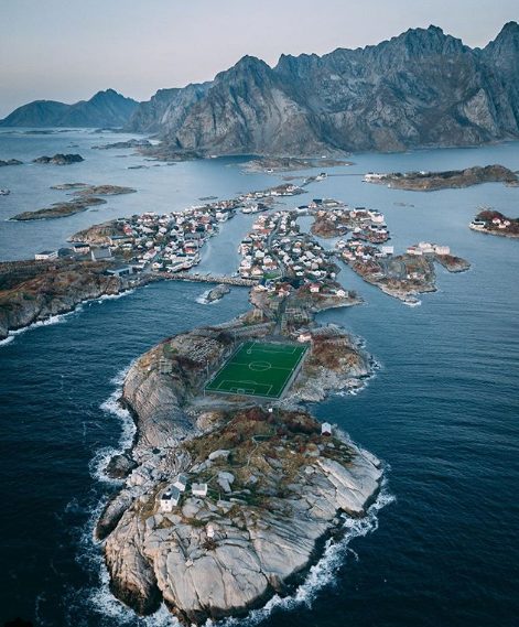Lo stadio più spettacolare al mondo è lo Henningsvaer Stadion che si trova sulle Isole Lofoten, nel nord della Norvegia, un arcipelago che conta meno di 25mila abitanti, mentre la città che ospita la struttura, appunto Henningsvaer, conta circa 500 abitanti. Il terreno è realizzato con un manto sintetico e solo dal 1983 è accessibile dalla strada. Lo stadio è stato costruito livellando il fondale e per evitare che la palla finisca in acqua hanno costruito delle griglie laterali realizzati con baccalà secchi. Nello Henningsvaer Stadion non gioca nessuna squadra professionista ma solo squadre amatoriali.